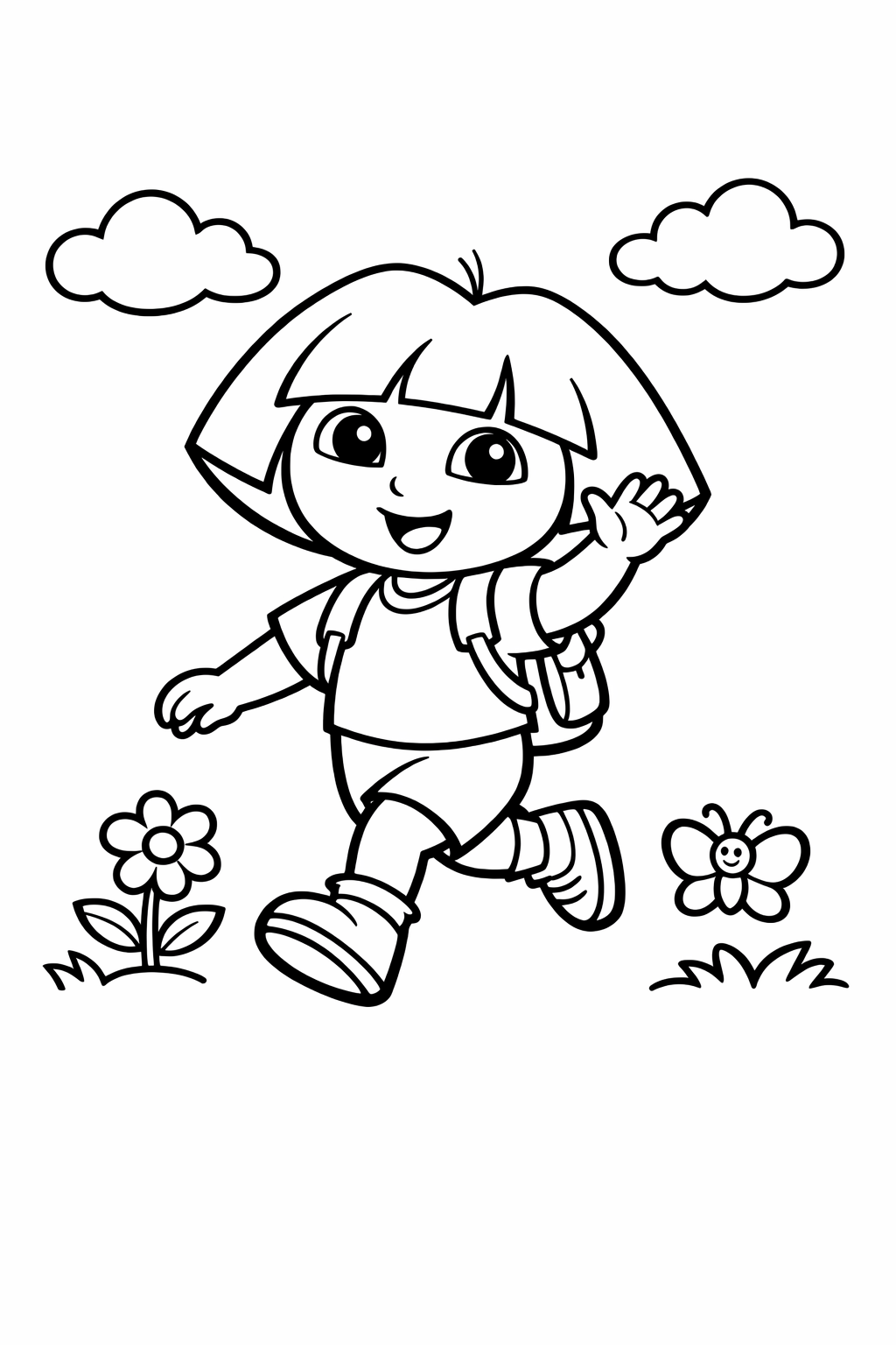 Przedstawiamy kolorowankę z Dorą, małą podróżniczką, którą uwielbiają dzieci. Na obrazku znajdziesz uśmiechniętą bohaterkę, być może w towarzystwie jej wiernego przyjaciela Butka, gotową na nową przygodę w otoczeniu przyrody. Ilustracja posiada grube i wyraźne kontury, co ułatwia maluchom precyzyjne kolorowanie bez wychodzenia za linię. Nasza kolorowanka jest od razu przygotowana do wydruku, więc w kilka chwil może stać się świetną zabawą. Chociaż projekt stworzono z myślą o najmłodszych, nasze proste wzory doskonale nadają się do zabawy dla dzieci w różnym wieku, wspierając rozwój ich kreatywności.