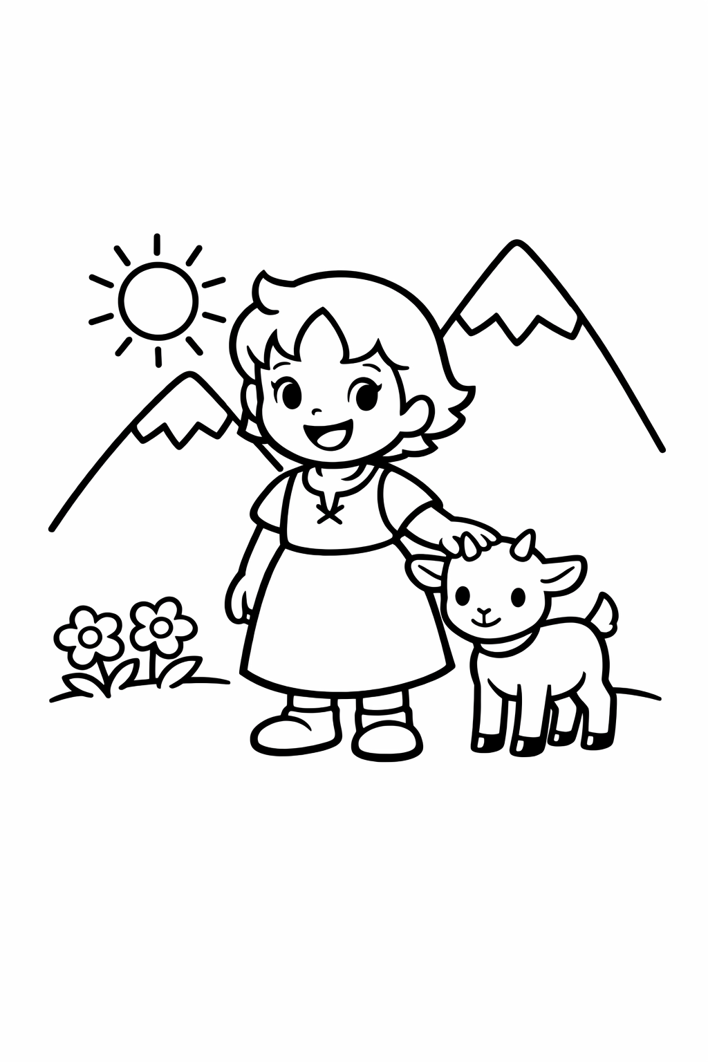 Przenieś się do alpejskiego świata Heidi dzięki tej uroczej kolorowance, stworzonej z myślą o najmłodszych. Na obrazku znajdziesz sceny pełne radości, przedstawiające główną bohaterkę, jej przyjaciół oraz urocze zwierzęta z górskich łąk. Grube i wyraźne kontury ułatwiają precyzyjne malowanie, co sprawia, że jest to idealna propozycja dla małych rączek. Kolorowanka jest przygotowana do wydruku, więc w kilka chwil możesz zacząć kreatywną zabawę w domu. Chociaż świetnie nadaje się dla przedszkolaków, z pewnością sprawi radość również nieco starszym dzieciom, które kochają tę ponadczasową historię.