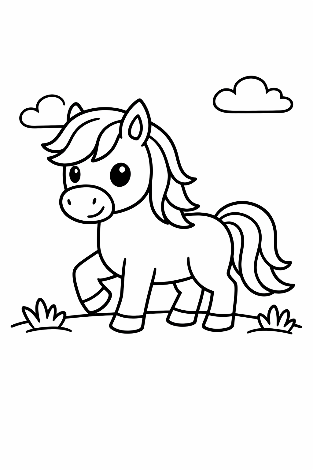 Przedstawiamy kolorowankę z majestatycznym koniem Mustangiem, symbolem wolności i dzikiej natury. Na obrazku znajdziesz dumnego konia w prostej, przyjaznej dla dziecka scenerii, która może przedstawiać łąkę lub otwartą przestrzeń. Dzięki grubym i wyraźnym konturom, malowanka jest idealna dla najmłodszych artystów, którzy dopiero uczą się precyzji i trzymania się linii. Obrazek jest w pełni przygotowany do wydruku, aby móc od razu cieszyć się kreatywną zabawą. Chociaż projekt jest prosty, nasze kolorowanki świetnie nadają się dla dzieci w różnym wieku, pozwalając każdemu na artystyczną ekspresję.